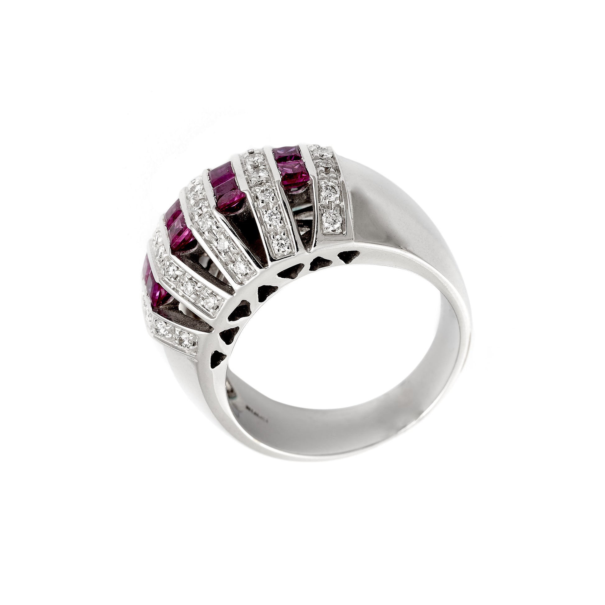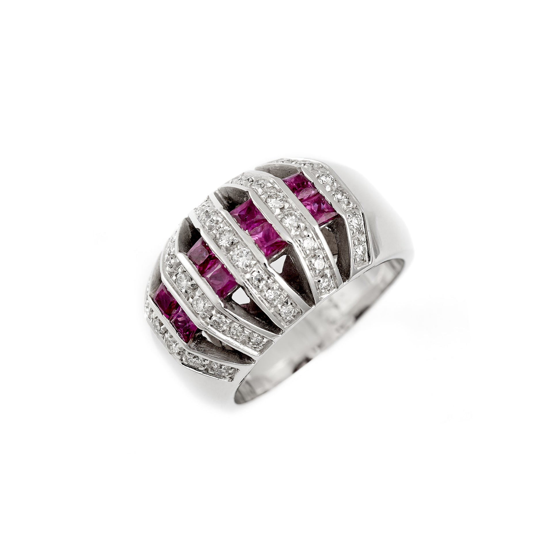 Diamantový prsteň s rubínom z bieleho zlata